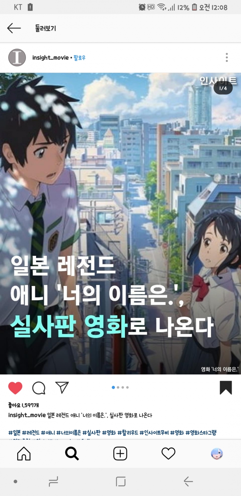 너의 이름은. 실사화 제작하네요