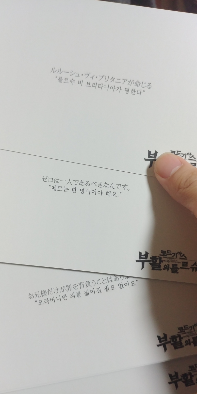 최구성 코드기어스 부활의 를르슈 보고왔습니다!(스포주의?) [애니] 작성일시 : 2019. 03. 16 (19:08) 조회 : 2,653 / 댓글 : 2 제목이 곧 내용이네요 솔직히 스포일지도 모르겠지만 를르슈 부활하더라구요이 작품도 이제 오래된 작품이지만 아직 인기 있더라구요 오신분들도 연령층이 다양하고 성비도 남여가 거의 반반씩....내용적으로는 제 주관적으로tv판을 만들려다 돈이 없어서 극장판으로 만들어서 급하게 내용을 펼쳤다 마무리하는 팬서비스 내용이였습니다 엔딩은 c.c의 헌신적인 모습을보면 당연하다 할 수 있는 엄청난 해피엔딩입니다이거보러 종로까지 다녀왔지만 특전보니 뿌듯하네요뒷장에 명대사가 참 좋군요! 정식 극장개봉이 아니라 아쉽지만 10월에 vod로 서비스한다네요 꼭 보시길 바랍니다! 6추천 글쓰기스크랩 신고