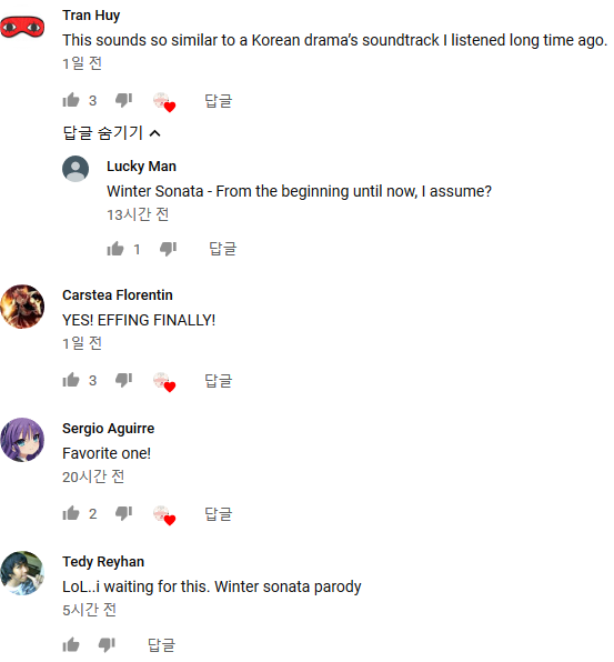 노호홍 방금 카구야님은 고백받고 싶어 1화 보고 왔는데요. [애니] 작성일시 : 2019. 04. 02 (00:20) 조회 : 3,504 / 댓글 : 3 어디선가 익숙한 음색이 흐르길래 생각해보니겨울연가 노린걸까요?외국 애들 댓글 보니 저랑 같은 생각하는 사람들도 있네요. 8추천 글쓰기스크랩 신고