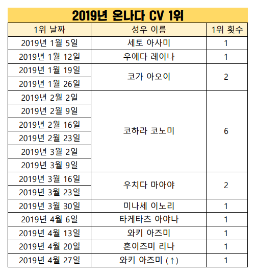 현재 1위 : 코하라 코노미 [6주]