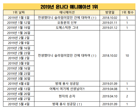 2019/5/4일자 온나다 종합 차트
