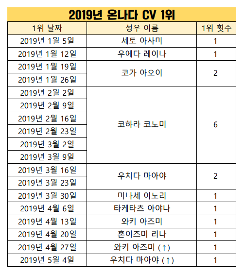 현재 1위 : 코하라 코노미 [6주]