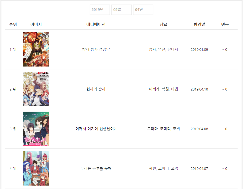 * 2019년 5월 4일 - 방패 용사 성공담 (2019.01.09) [2주] *