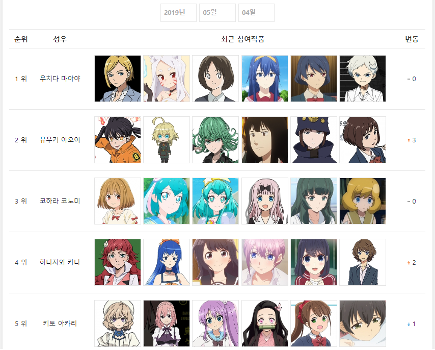2019년 5월 4일자 온나다 종합차트입니다.