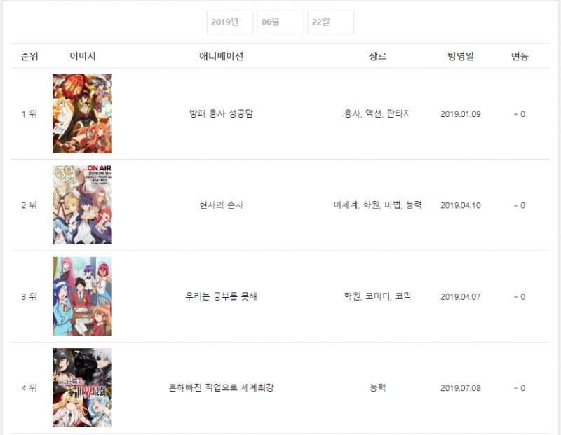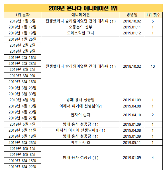 * 2019년 6월 22일 - 방패 용사 성공담 (2019.01.09) [7주] *