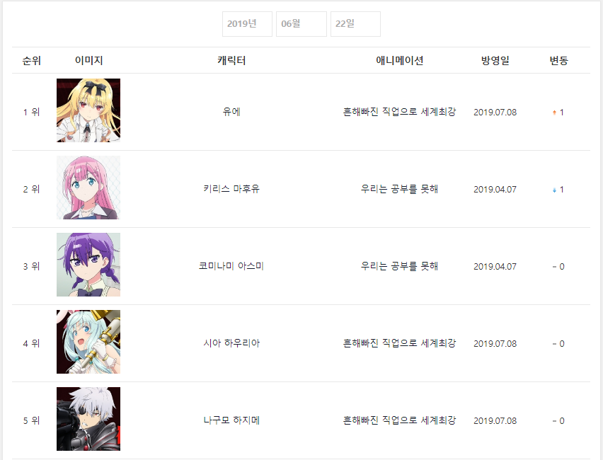* 2019년 6월 22일 - 유에 (흔해빠진 직업으로 세계최강) [1주] *
