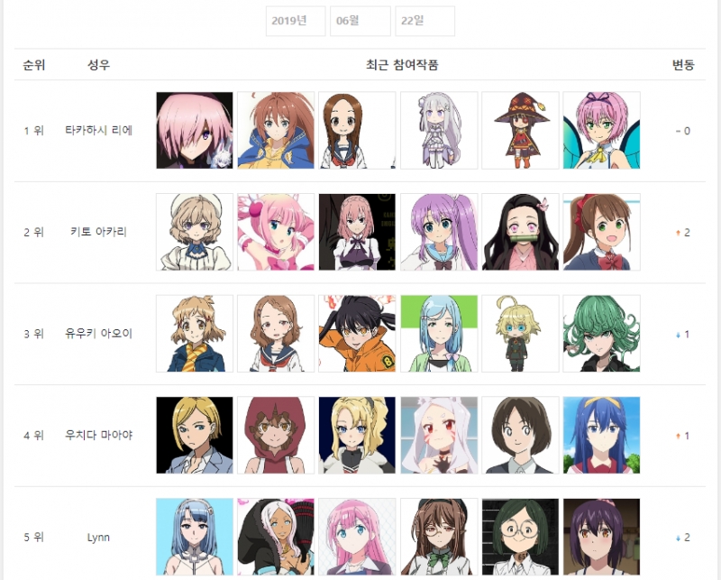 2019년 6월 22일자 온나다 종합차트입니다.