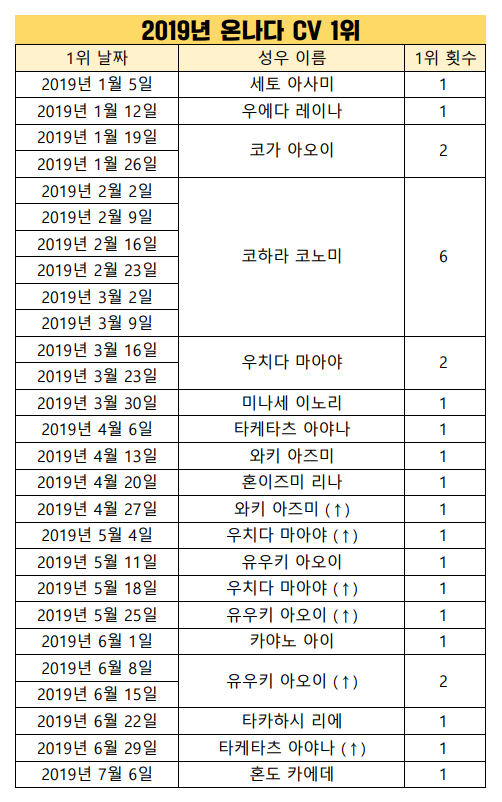 현재 1위 : 코하라 코노미 [6주]