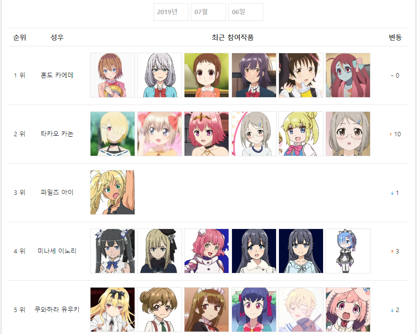 2019년 7월 6일자 온나다 종합차트입니다.