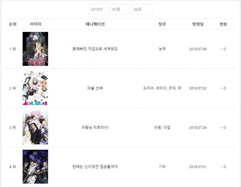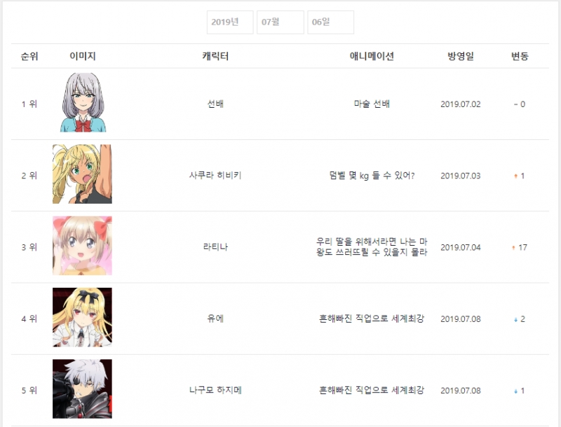 2019/7/6일자 온나다 종합 차트
