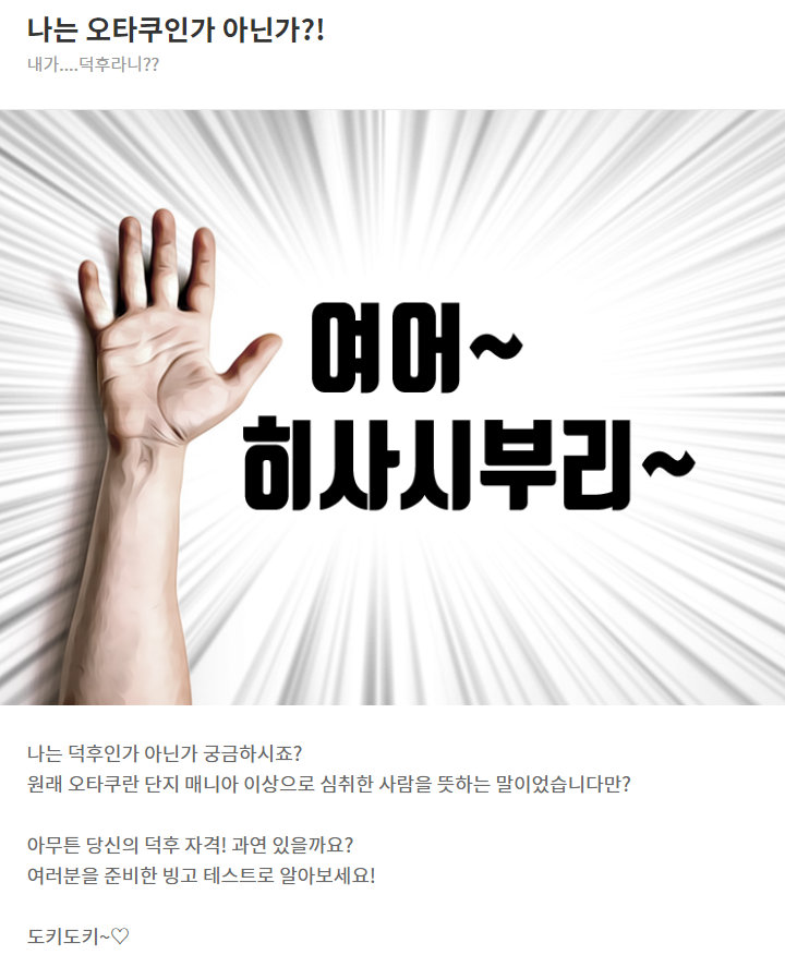 시스터 심심한 분 이거 해보세요. [일반] 작성일시 : 2019. 07. 18 (23:52) 조회 : 2,782 / 댓글 : 14 https://www.simcong.com/quiz/328 전 일반인 나옴 8추천 글쓰기스크랩 신고
