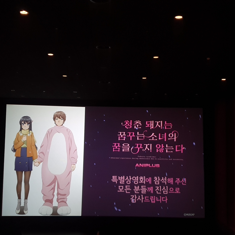 TMTonejae [주의] 청춘돼지 극장판 초간단 후기(스포X) [애니] 작성일시 : 2019. 07. 20 (15:22) 조회 : 2,131 / 댓글 : 4 약 90분간 상영했는데요저는 원작과 애니를 미리 보고 온 상태에서 봤는데전 90분이라는 시간을 중요 포인트를 잘 보여줘서적절한 스킵과 전개가 돋보였습니다 그리고 마이 선배는 너무 이쁘더라고요 ㅎㅎ성우진의 열연도 좋았고요 여러분이 가장 궁금해 하는 정식개봉 여부는아쉽게도 공개가 되지 않았습니다 ㅜㅜ 저번 논논비요리 극장판 처럼바로 VOD 서비스로 할 가능성이 있는데요 좀 더 지켜봐야겠군요 6추천 글쓰기스크랩 신고