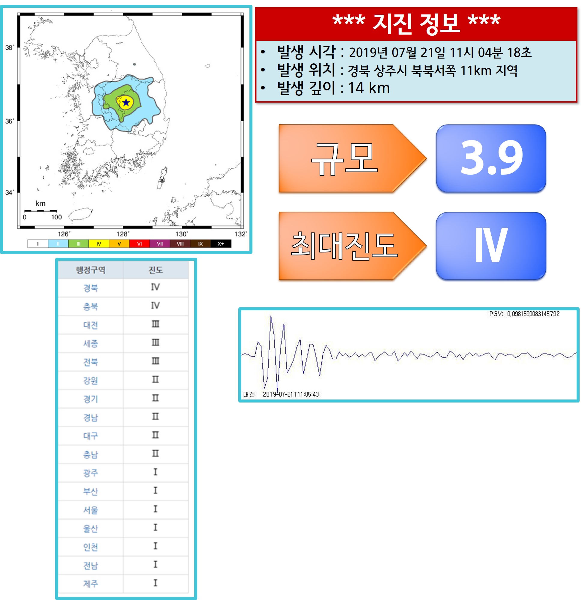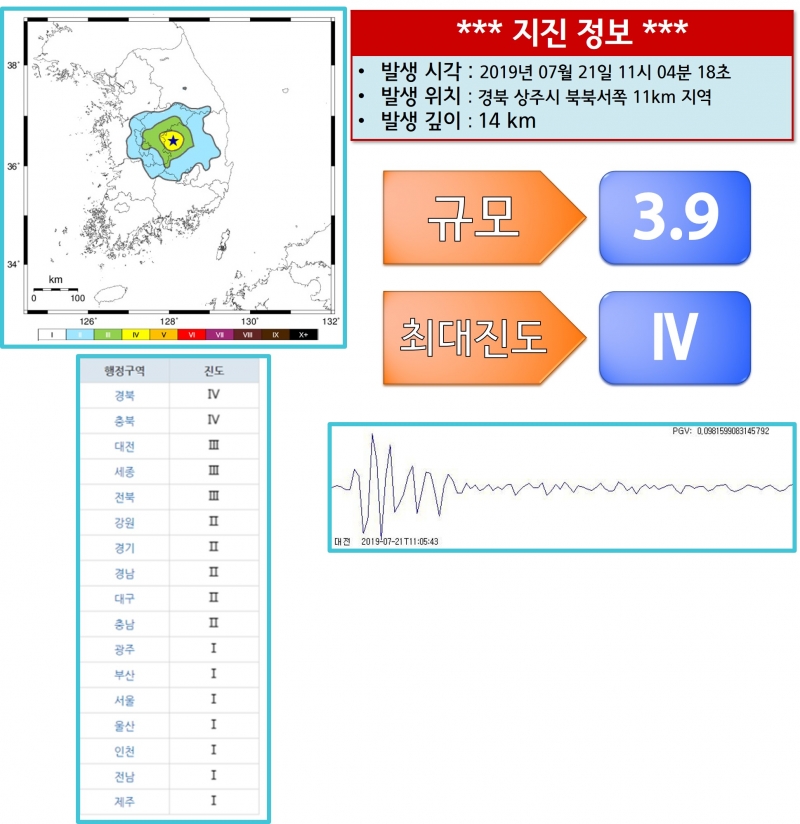 경북 상주시 지진 발생