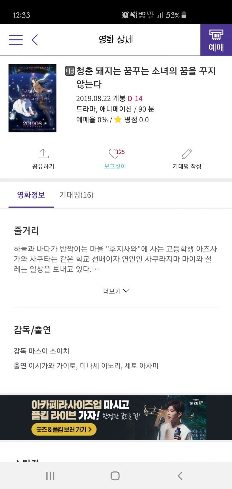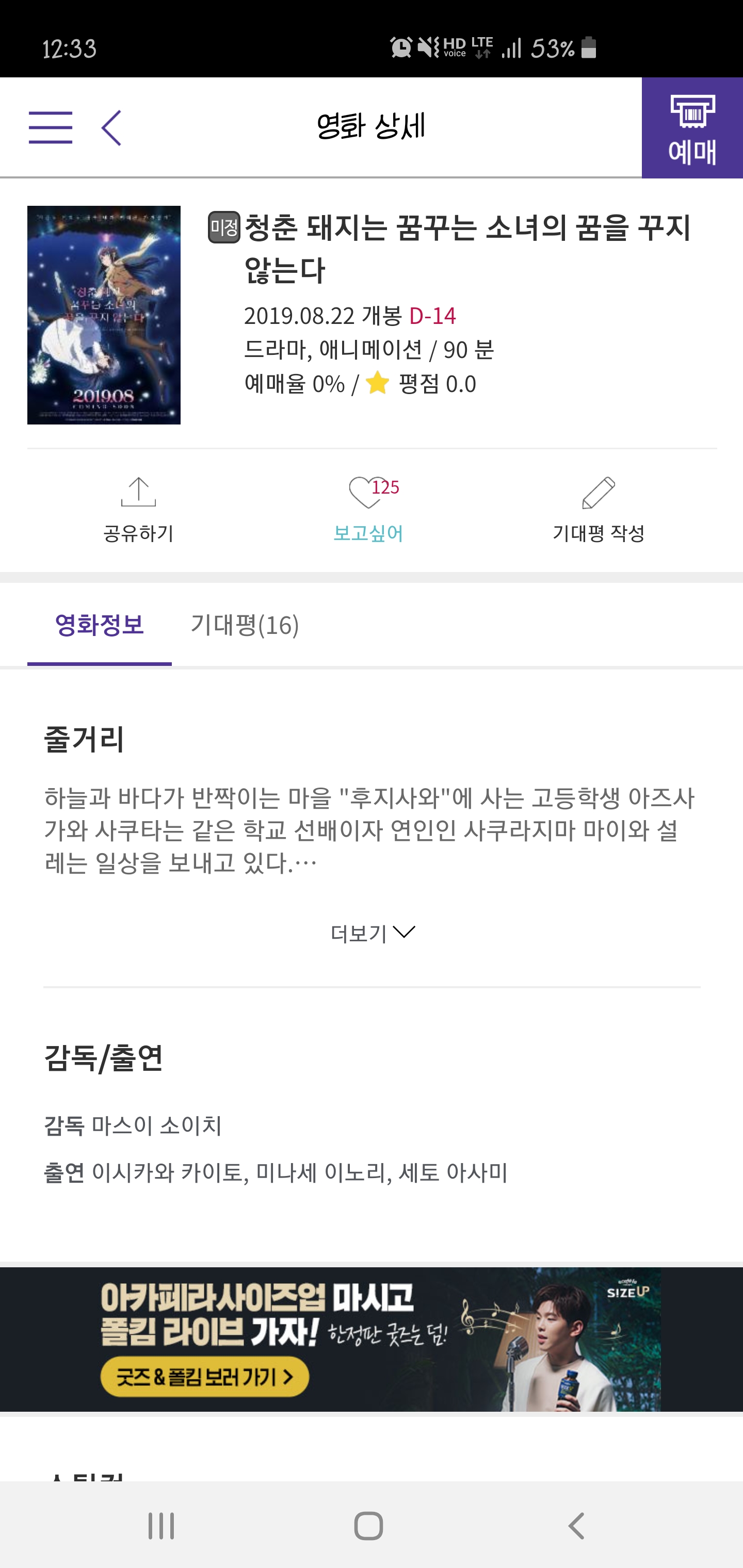 TMTonejae 청춘돼지 극장판 개봉일이 나왔습니다 [애니] 작성일시 : 2019. 08. 08 (12:35) 조회 : 2,453 / 댓글 : 10 8월 22일 메가박스 단독개봉입니다마이 선배 8월 22일에 만나요 ㅎㅎ 5추천 글쓰기스크랩 신고