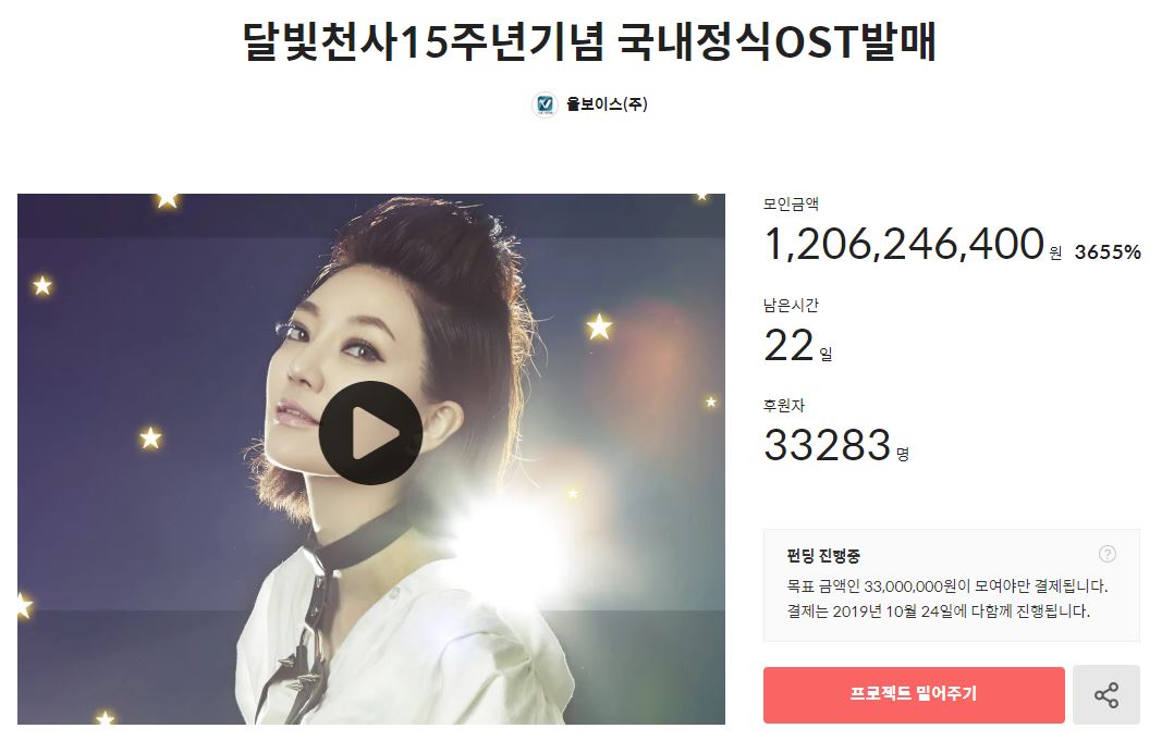 달천 15주년으로 ost 국내정식 앨범 만든다고 한다 그래서 지금 그걸 만드는데 필요한 후원금을 모으고 있다고 한다