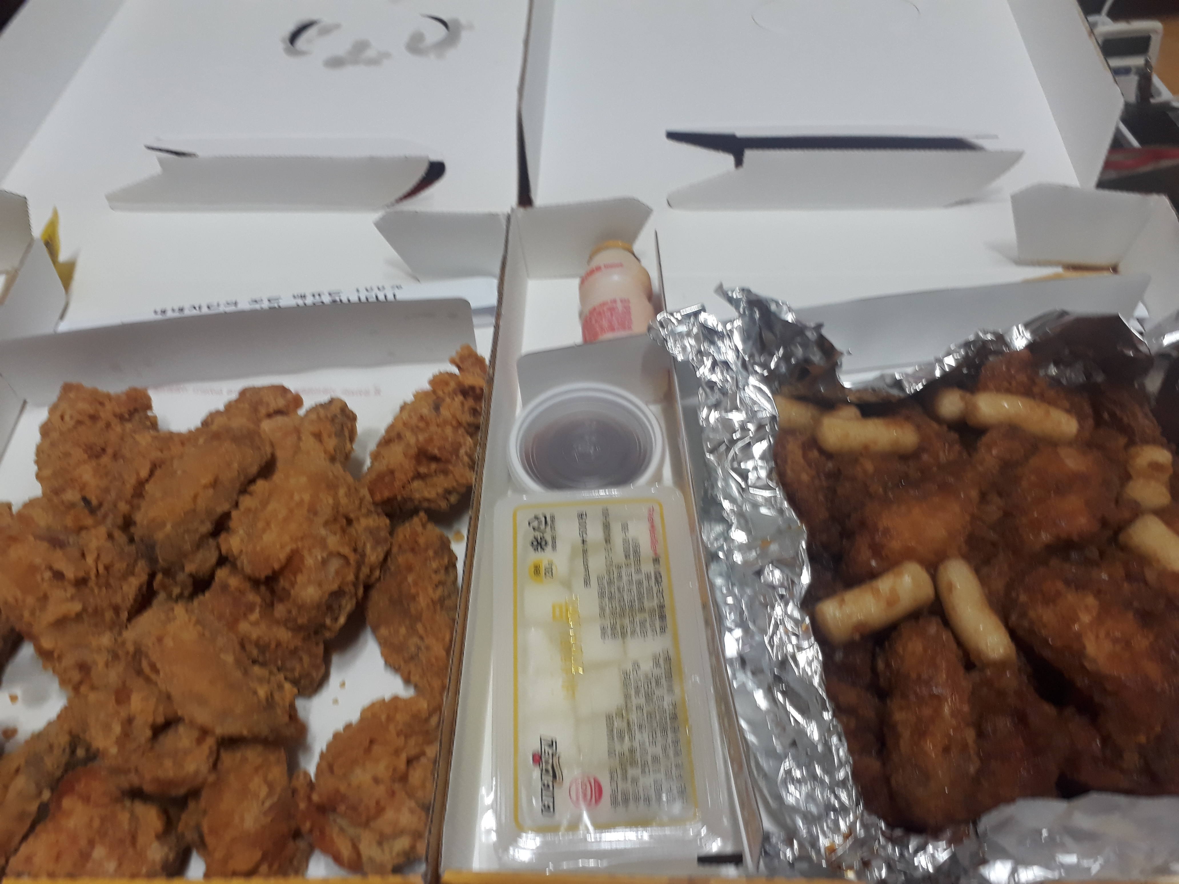 솔플 어제 불타는 금요일 [일반] 작성일시 : 2019. 10. 19 (02:24) 조회 : 2,400 / 댓글 : 4 위 점심은 이마트푸드코트 돈까스입니다.아래는 후라이드치킨랑 간장치킨왓다! 배달비 천원이 날라가요ㅠ... 배가 불러서 못먹어겠어요. 주말인데 살이 빼야지.. 10추천 글쓰기스크랩 신고