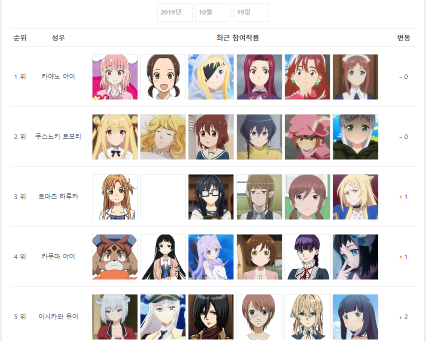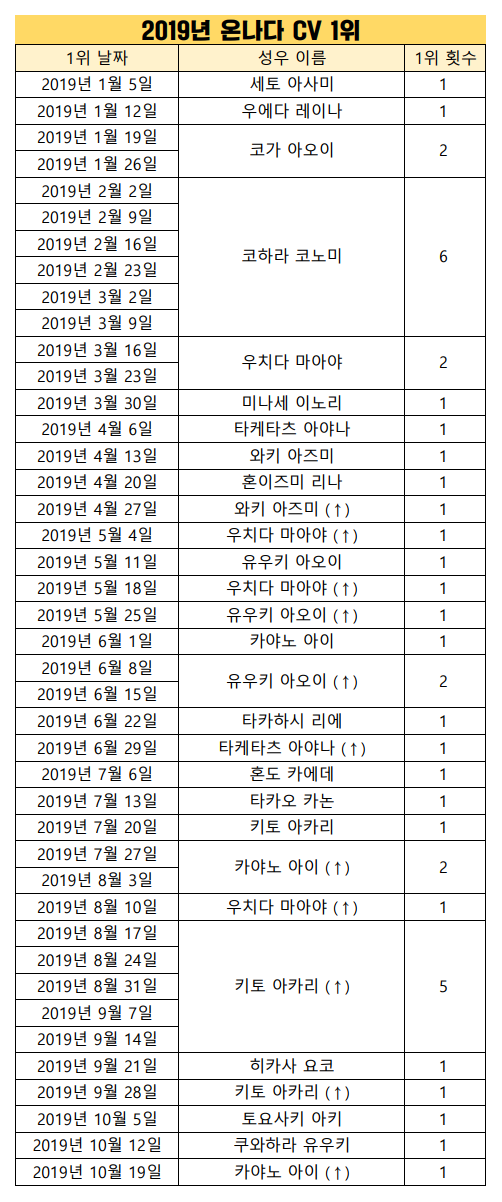 CV는 2달만에 카야노 아이가 1위를 했네요.