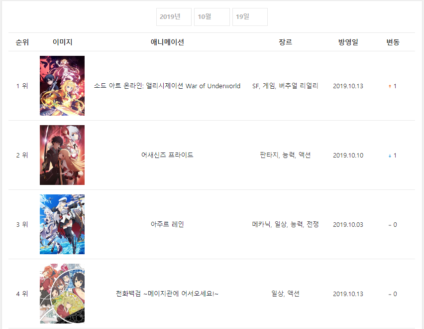 * 2019년 10월 19일 - 소드 아트 온라인: 앨리시제이션 War of Underworld (2019.10.13) [1주] *