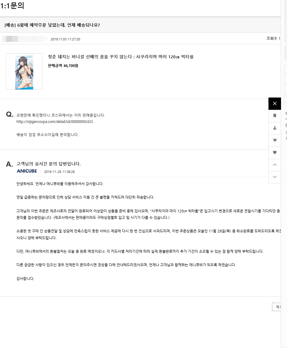 토모키 역시나 민원은 카드사를 통해~! [일반] 작성일시 : 2019. 11. 29 (22:47) 조회 : 2,254 / 댓글 : 3 내 전화는 안 받아도, 결제대행사 전화는 직빵인가봅니다.앞으로는 큰업체를 통해서 구매대행만 해야겠어요. 3추천 글쓰기스크랩 신고