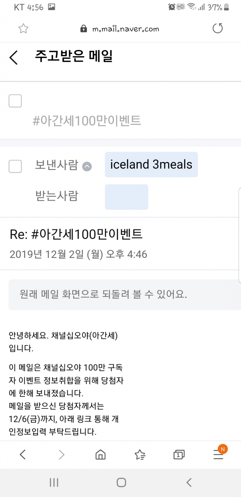 토모야 역시 응모는 하고 볼일 이군요? [일반] 작성일시 : 2019. 12. 02 (18:05) 조회 : 2,207 / 댓글 : 4 아직 경품이 뭔지는 모르겠지만스벅 기프티콘이겠죠! 5추천 글쓰기스크랩 신고