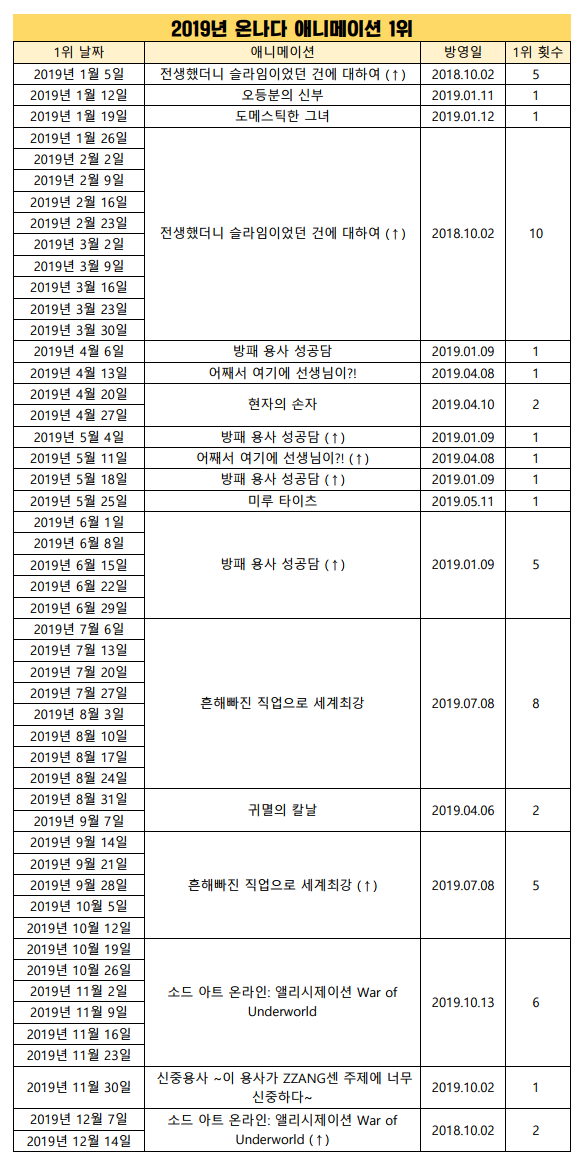 현재 1위 : 전생했더니 슬라임이었던 건에 대하여 (2018.10.02)