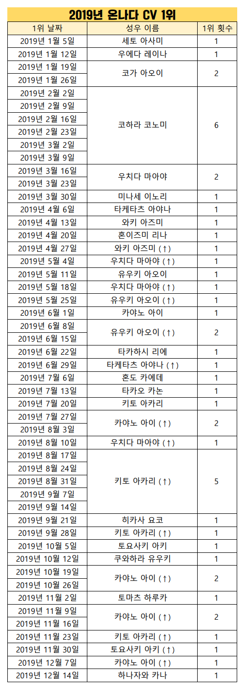 현재 1위 : 키토 아카리, 카야노 아이 [8주]