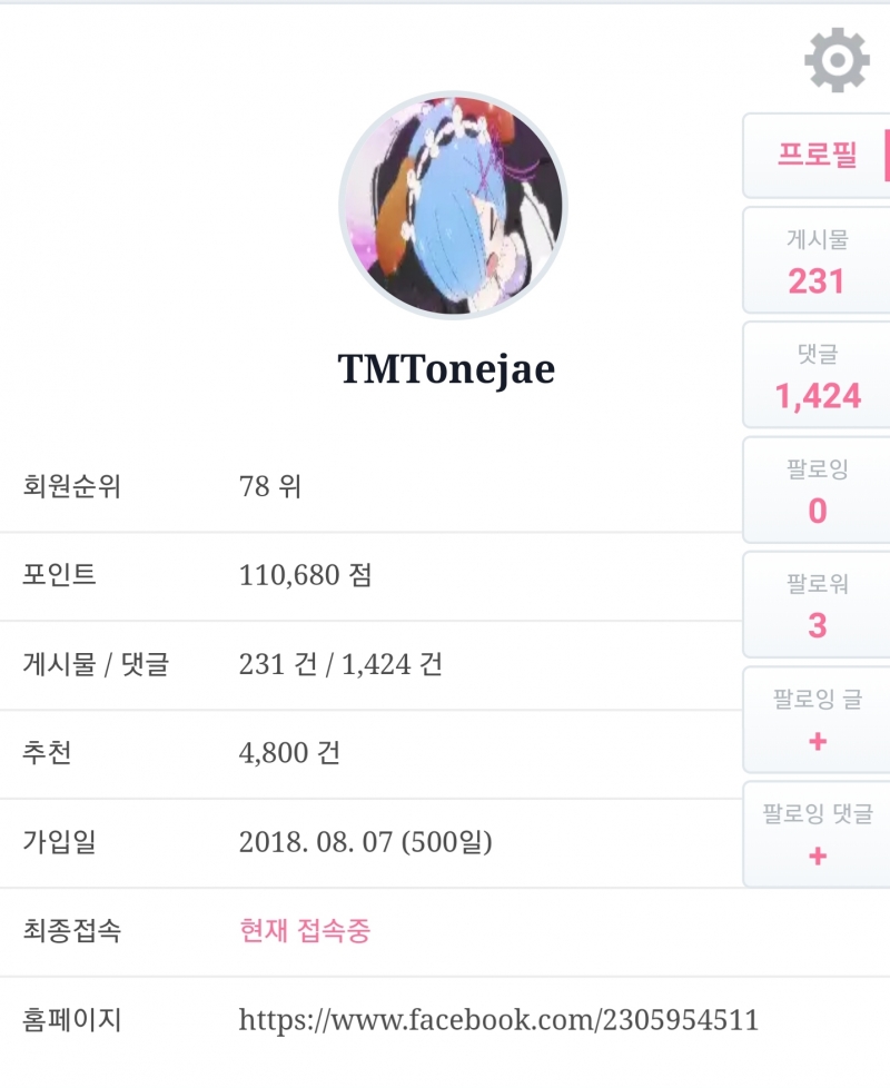 TMTonejae 저도 인증합니다 [일반] 작성일시 : 2019. 12. 20 (12:30) 조회 : 2,057 / 댓글 : 4 500일이 된 애니 고인물이네요회원 TOP 100 안에 드네요 ㅎㅎ 9추천 글쓰기스크랩 신고