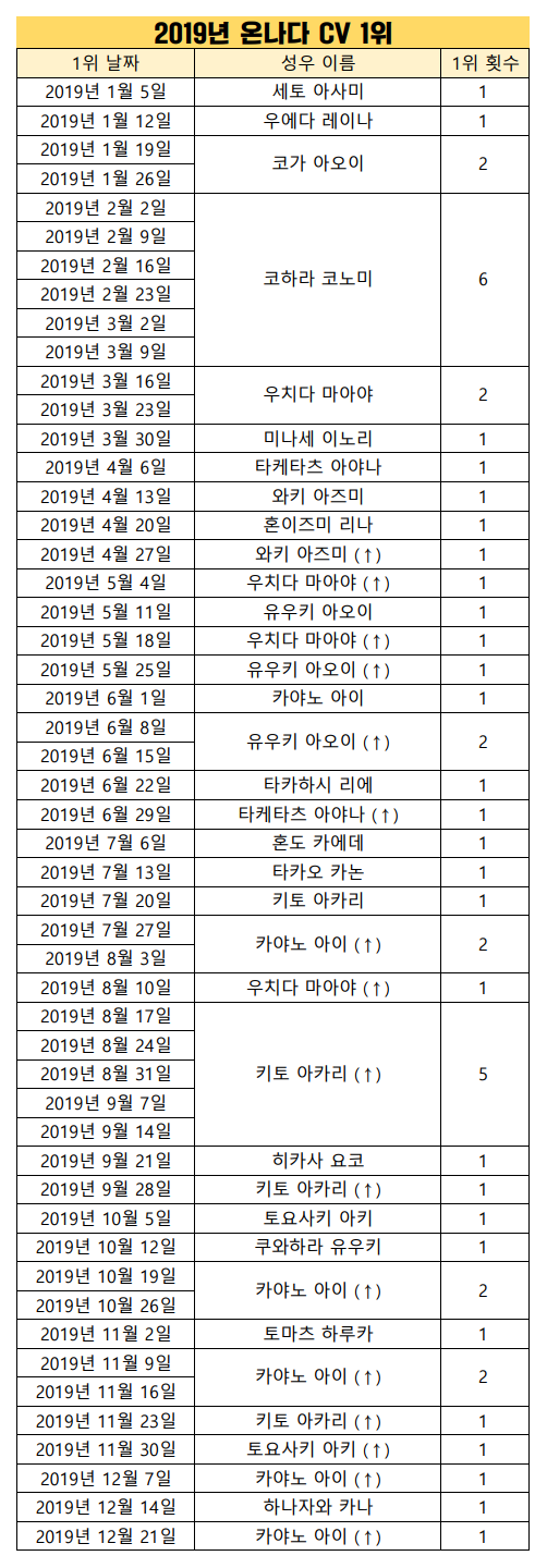 현재 1위 : 카야노 아이 [9주]