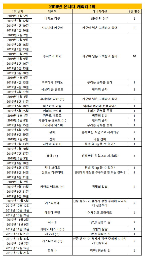현재 1위 : 후지와라 치카 (카구야 님은 고백받고 싶어) [12주]