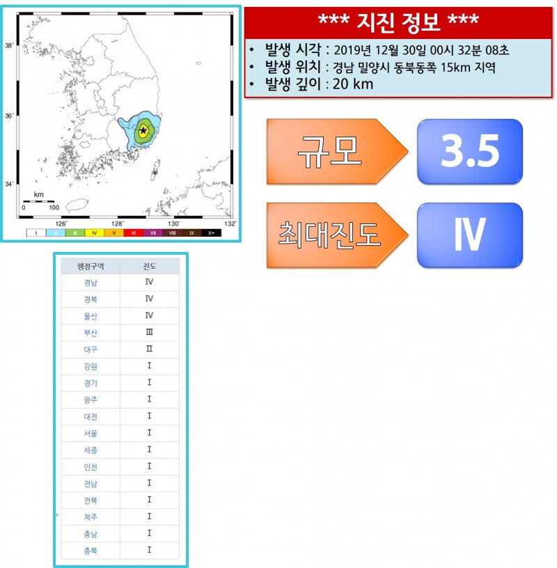 JINI 경남 밀양에 약간 강한 지진이 발생하였습니다. [일반] 작성일시 : 2019. 12. 30 (00:54) 조회 : 2,180 / 댓글 : 3 경북, 경남, 울산 지역에서 진도 4를 기록하였습니다. 4추천 글쓰기스크랩 신고
