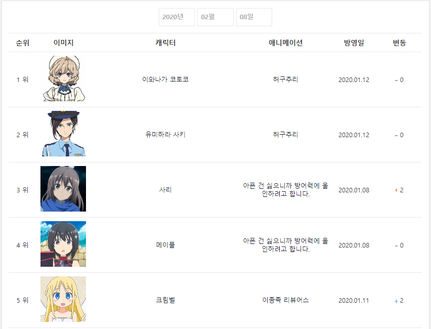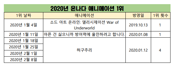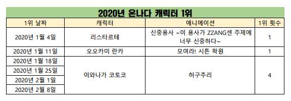 2020/2/8일자 온나다 종합 차트