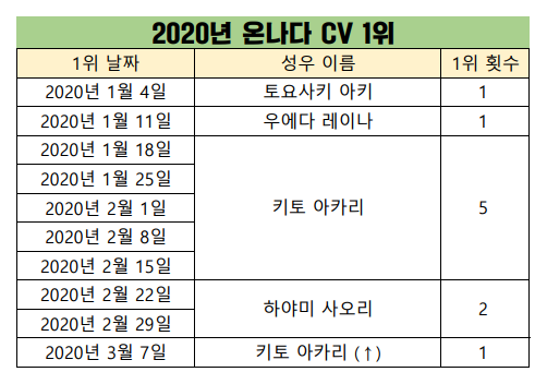 현재 1위 : 키토 아카리 [5주]