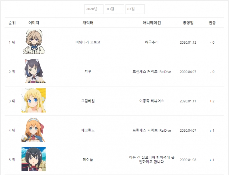2020년 3월 7일자 온나다 종합차트입니다.