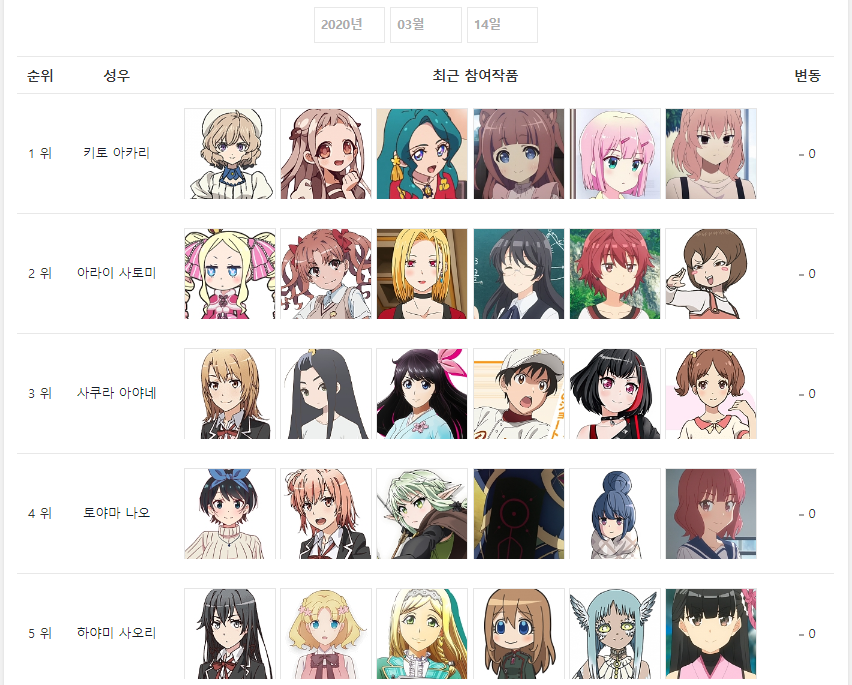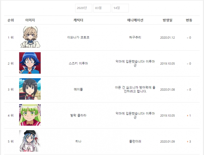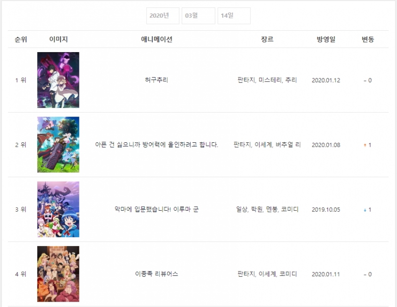 2020년 3월 14일자 온나다 종합차트입니다.