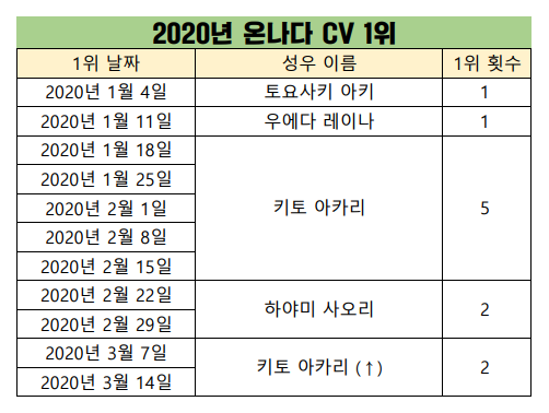 현재 1위 : 키토 아카리 [7주]