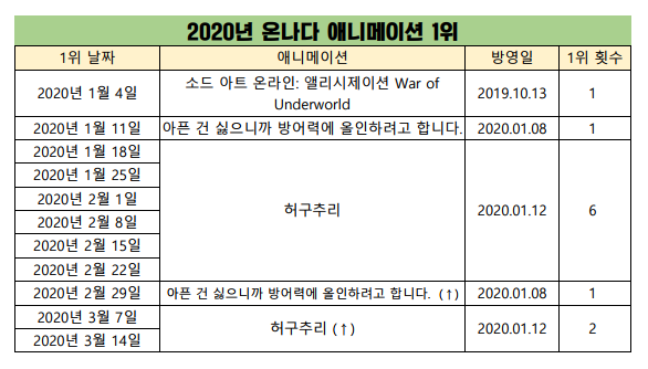 2020/3/14일자 온나다 종합 차트