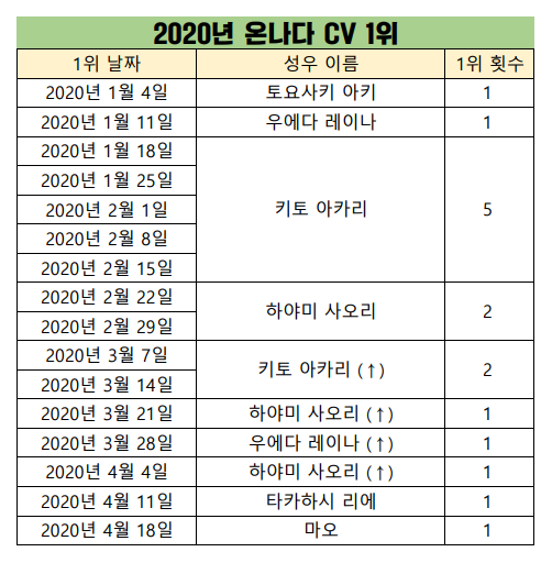 현재 1위 : 키토 아카리 [7주]