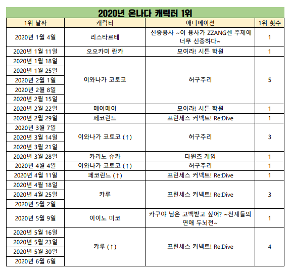 예상외로 프리코네의 캬루가 오래도록 1위를 할 줄 몰랐네요!