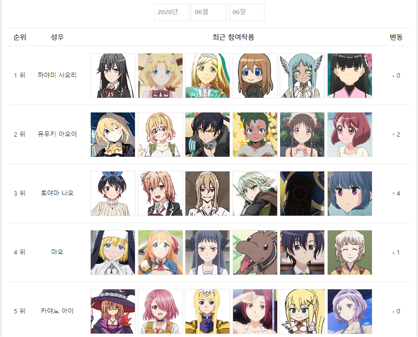 2020년 6월 6일자 온나다 종합차트입니다.