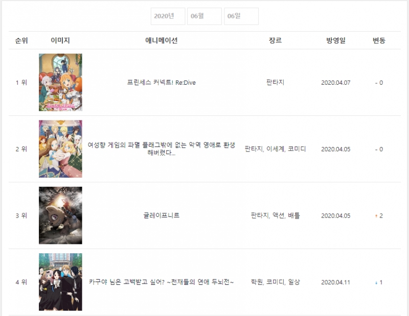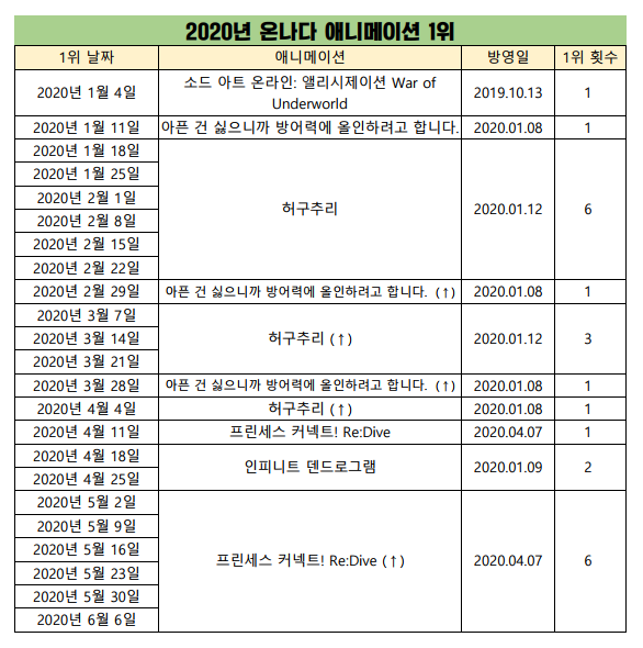 * 2020년 6월 6일 - 프린세스 커넥트! Re:Dive (2020.04.07) [7주] *