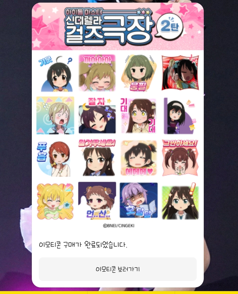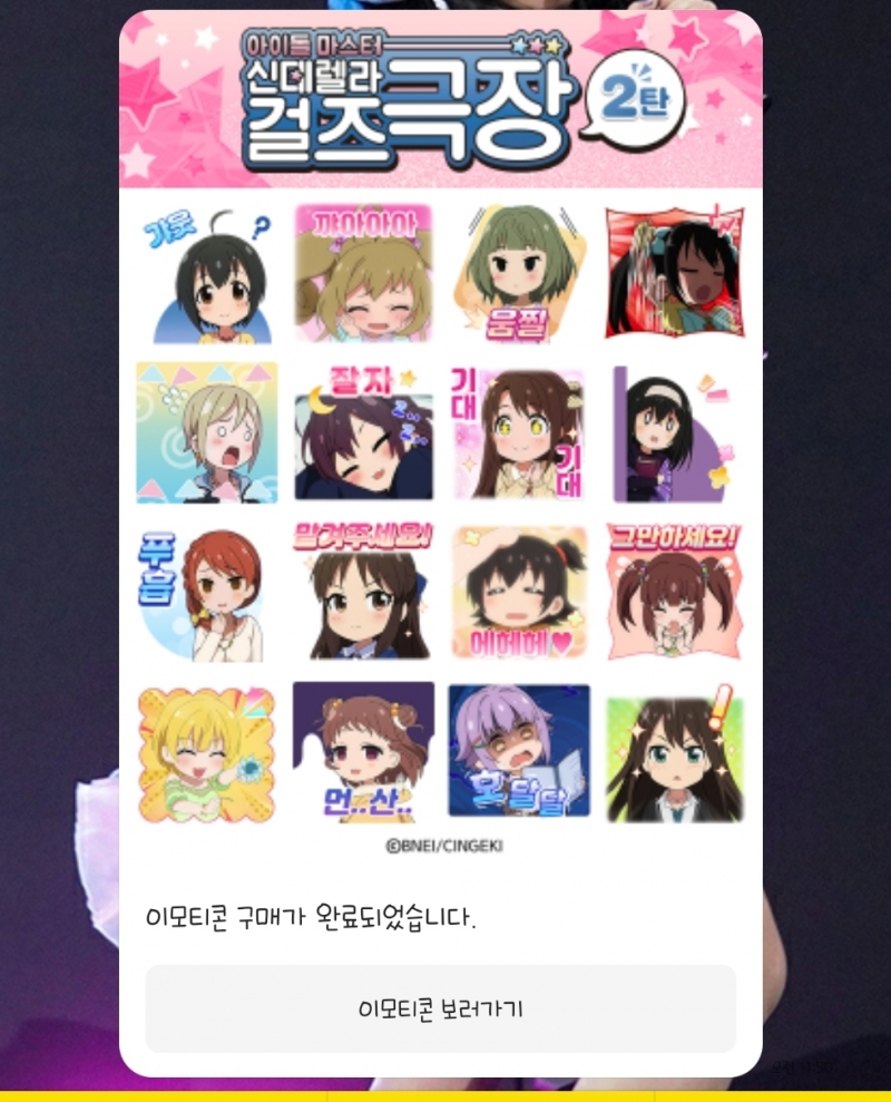 TMTonejae 임티콘 간만에 질렀습니다 [일반] 작성일시 : 2020. 06. 18 (11:55) 조회 : 2,058 / 댓글 : 2 신데마스 극장 임티 2탄이 나와서바로 구매했습니다 다른 애니 임티콘도 좀 나왔으면 하네요요즘은 뭐 워낙 하루하루가 혼세마왕이전국구를 돌아다니니 존버하는겁니다(?) 8추천 글쓰기스크랩 신고