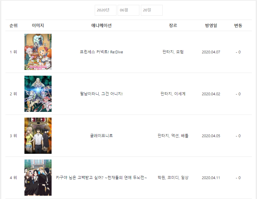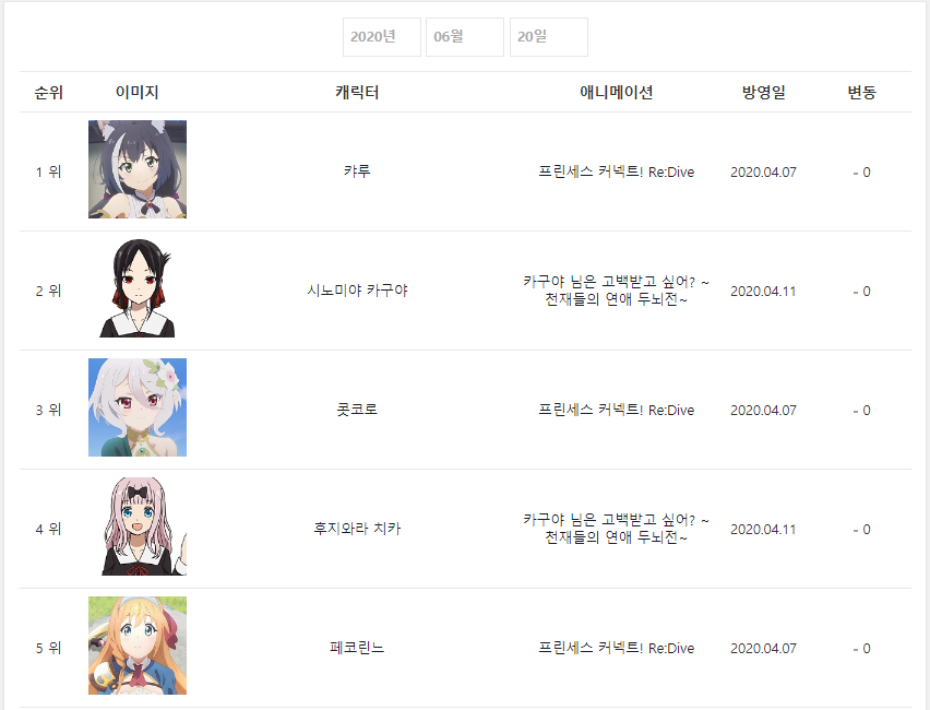 * 2020년 6월 20일 - 프린세스 커넥트! Re:Dive (2020.04.07) [9주] *