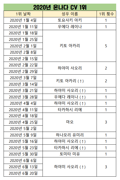 2020년 6월 20일자 온나다 종합차트입니다.