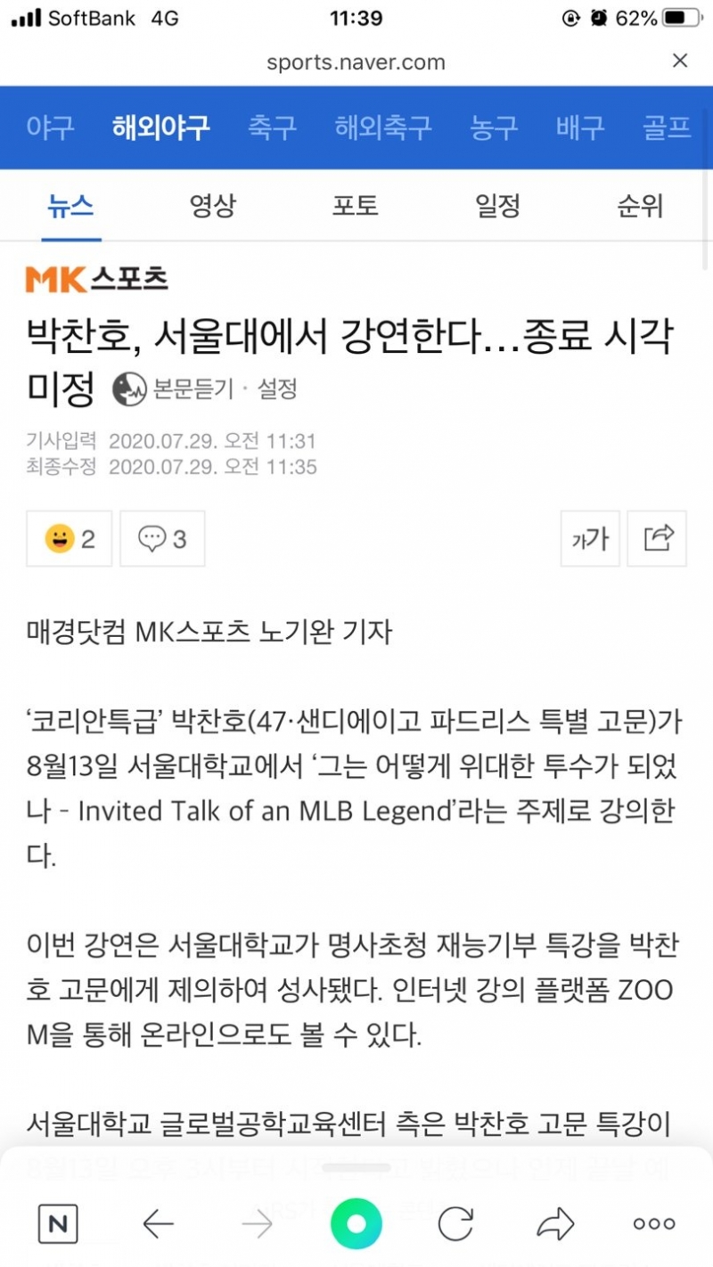 TMTonejae 무섭네요 [일반] 작성일시 : 2020. 07. 29 (23:50) 조회 : 1,946 / 댓글 : 4 TMT 전 야구선수 박찬호씨가온라인 강연을 하는데종료 시각 미정이 무섭네요 ㅋㅋㅋㅋ 강연 듣다가 지쳐서 다른 거 하는 사람들이90%이고 최소 반나절이상 할 것 같네요 6추천 글쓰기스크랩 신고