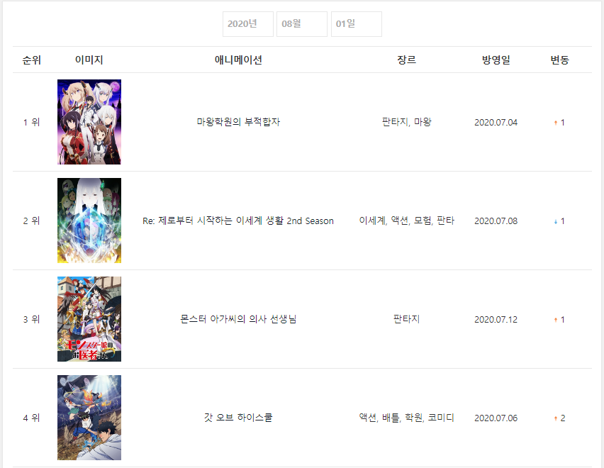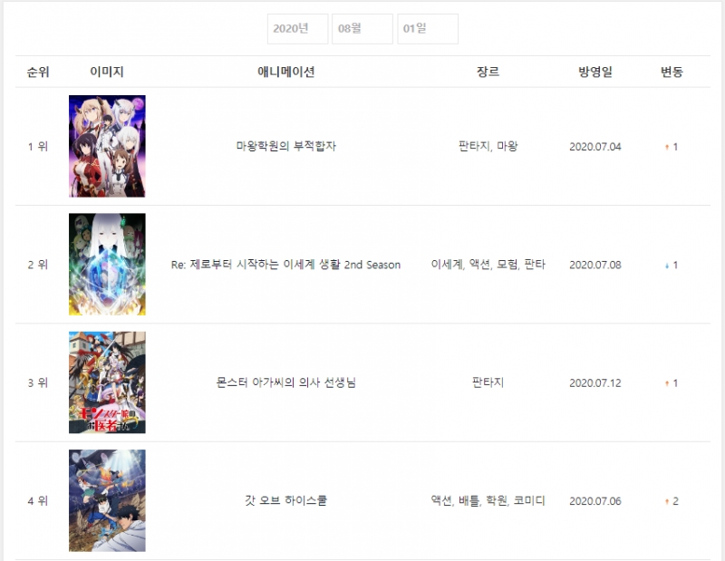 세 차트 모두 제각기 다른 애니들이 1위를 했네요