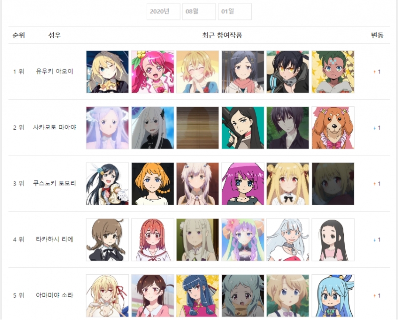 유우키 아오이가 오랜만에 1위를 했습니다.