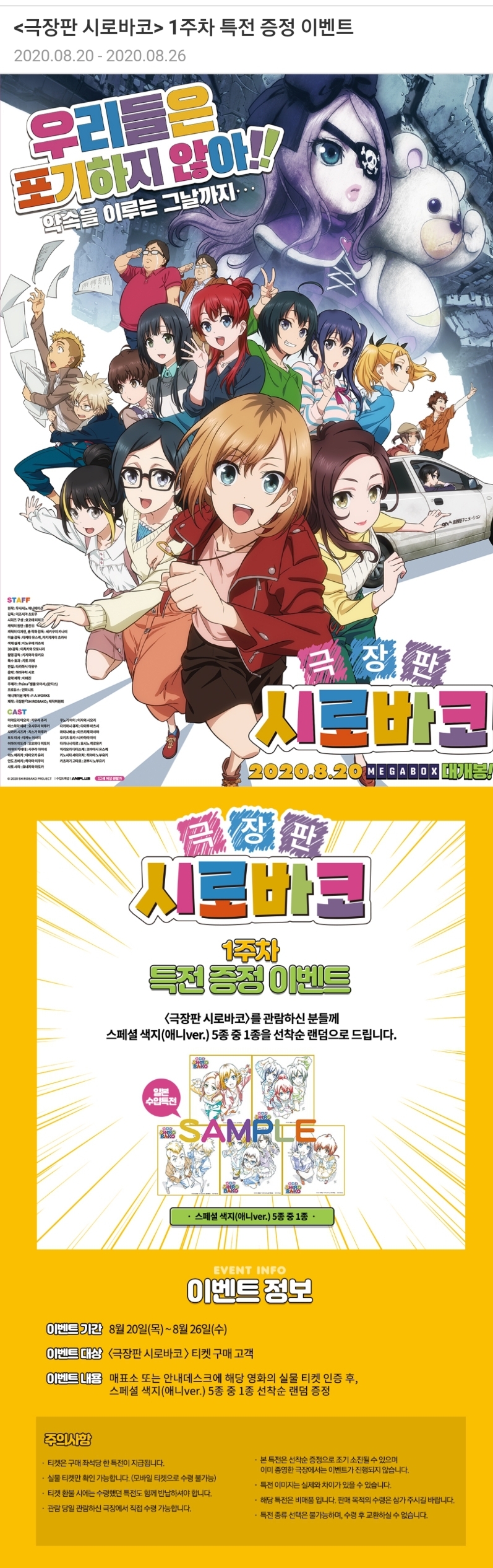 토모야 개봉 5일전 입니다! [일반] 작성일시 : 2020. 08. 15 (23:23) 조회 : 2,186 / 댓글 : 3 부산은 상영을 안하는군요 ㅡ3ㅡ 출처(링크) : https://m.megabox.co.kr/event/detail?eventNo=8647 6추천 글쓰기스크랩 신고