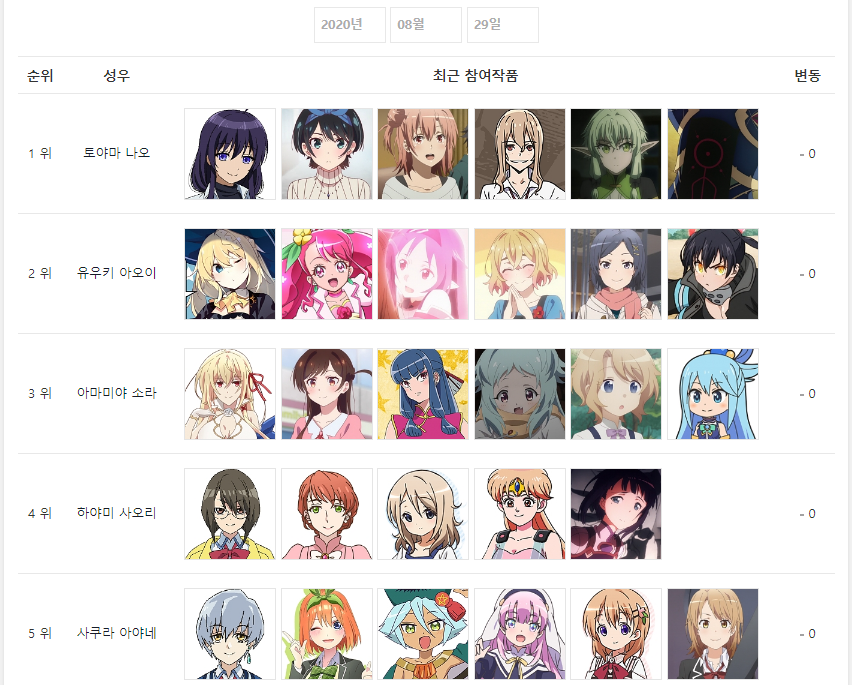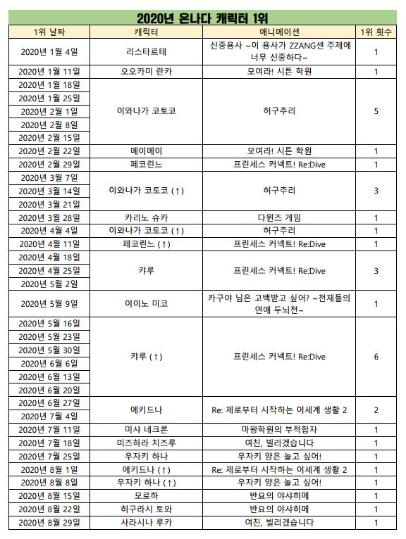 현재 1위 : 허구추리 (2020.01.12), 프린세스 커넥트! Re:Dive (2020.04.07)