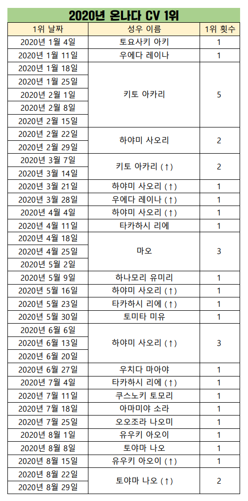 현재 1위 : 하야미 사오리 [8주]