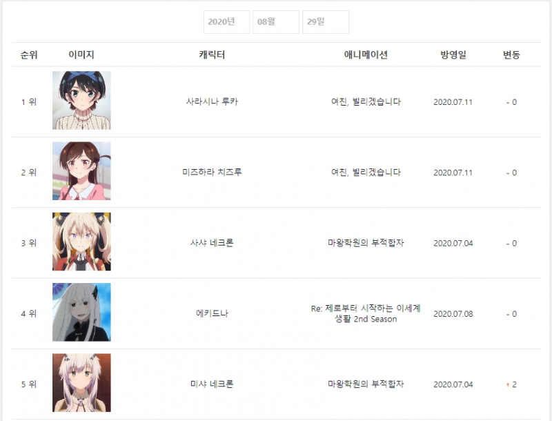 캐릭터는 렌탈여친의 또다른 히로인 캐릭이 1위에 올랐네요!